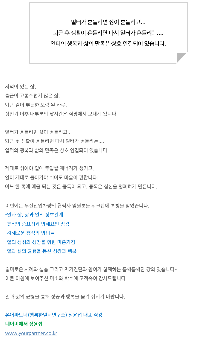 Àϰú »îÀÇ ±ÕÇü µÎ»êÇù·Â¾÷ü ¿öÅ©¼¥